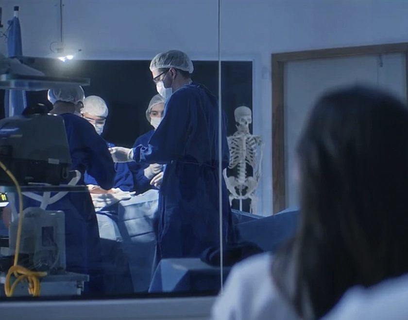 Essas simulações permitem o treinamento de habilidades como ressuscitação cardiopulmonar, intubação, cirurgias minimamente invasivas, manejo de emergências, ultrassonografia e exames clínicos. Os cenários abrangem desde consultas de rotina até situações críticas, desenvolvendo competências técnicas, raciocínio clínico e habilidades de comunicação em um ambiente controlado, antes do contato com pacientes reais. Esse processo é complementado por laboratórios de última geração, garantindo uma formação prática e tecnológica desde o início do curso.